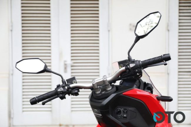 Hal ini juga dituangkan pada Honda ADV150. Pada sesi test ride, pembeda itu sangat terasa ketika kedua tangan mulai berkenalan dengan stang model fat bar-nya. Tapi, apa iya dengan bentuk dan ketinggian jok 795 mm bakal nyaman ditunggangi? Lagi-lagi pertanyaan ini harus diralat. Maaf, bukan karena ini produk baru. Tapi, komposisi stang dan jok ini justru membuat makin betah berada di atasnya.
