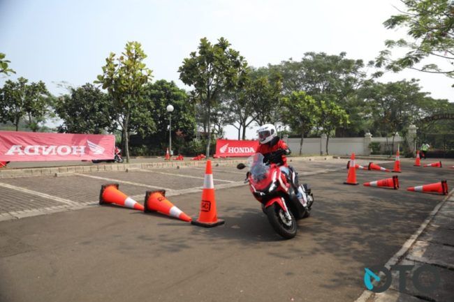 Belum lagi pilihan AHM menerapkan roda beda size (depan: 110/80 – 14 M/C Tubeless & belakang: 130/70 – 13 M/C Tubeless). Profil semi dual purpose sama sekali tak mengganggu, dalam artian terasa berat untuk bermanuver. Kami pun begitu menikmati setiap liukan bersama Honda ADV150 tipe ABS ini di area test ride slalom dan zig-zag.