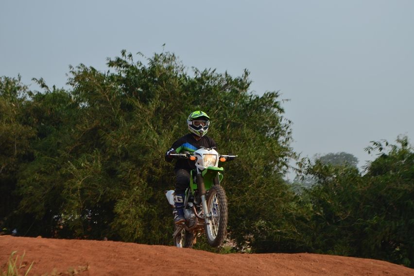 Dirasa cukup menjajal trek on road, kami diajak ke habitat asli motor ini, di lintasan tanah. Lengkap menggunakan riding gear khusus off road, kami pun tak sabar untuk langsung mencobanya.