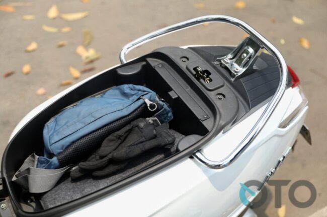 Sebelum membahasnya lebih lanjut, ada satu informasi terkait posisi berkendaranya itu. Kenyamanan, khususnya kaki tadi, dikarenakan peletakan tangki bensin di bagian bawah. Tapi, posisi lubang tangki yang pendek cukup merepotkan sewaktu pengisian BBM. Apalagi untuk membuka covernya dilakukan secara manual. Sisi positif dari posisi tampungan bensin itu, memberi keuntungan terhadap akomodasi barang di bawah jok. Bawaan jadi lebih banyak dan di bagasi itu juga sudah tersedia USB port untuk mengisi daya ulang gawai.