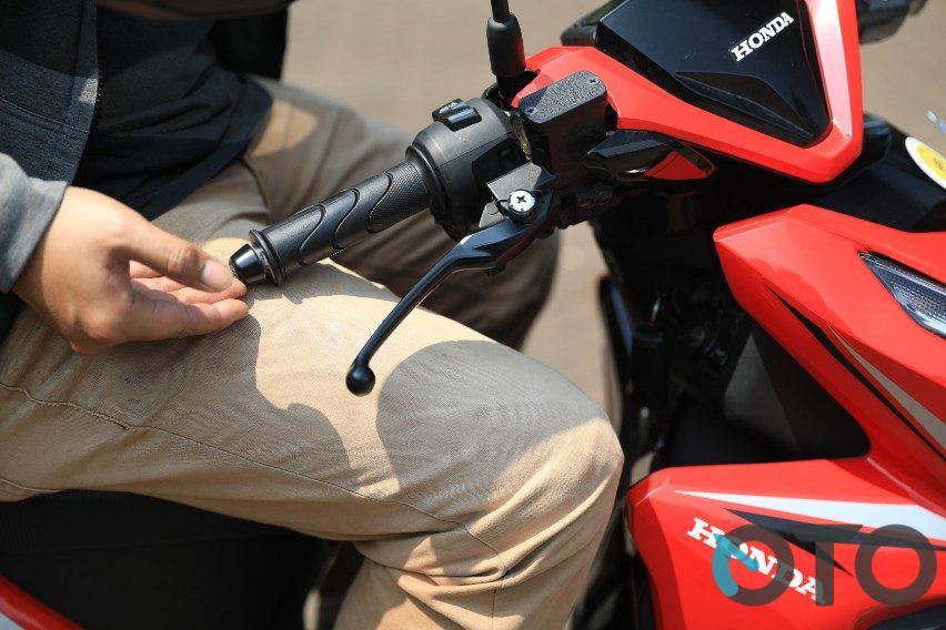 Bobot stangnya ketika membelok, tak seenteng skutik Yamaha seperti FreeGo ataupun Soul GT. Buat Anda yang sudah terbiasa naik skutik Honda, pasti sudah tahu itu. Bobot pergerakan kemudi yang tak terlalu enteng, juga menjaga motor stabil melaju di jalurnya. Faktor ini pula yang justru membuatnya asyik diajak menikung di kecepatan tinggi. Tapi ingat, jangan terlalu kencang saat menikung ya! Karena memakai ban yang berukuran lebih kecil dibanding Vario 150, tentu kemampuan bermanuvernya pun berbeda.