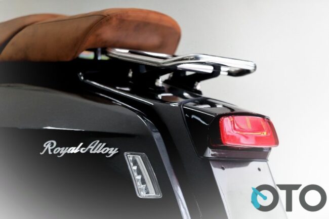 Modernitas tetap dituangkan pabrikan lewat sematan lampu jenis LED. Sementara di dalam rumah lampu terdapat list putih bertuliskan Royal Alloy. Lantas berkesan mewah lantaran dibungkus cover heksagon beraksen krom. Sama pula dengan pengaplikasian sein mungil di kedua tebeng, jua dengan lampu hemat daya.