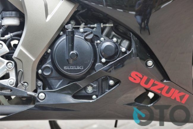 Pun desain fairing dan lekuk bodi pada tangki motor ini. Meski sudah sedikit mengarah ke aura yang lebih agresif dibanding motor Suzuki lainnya, namun desain bergaya santun motor-motor Suzuki masih bisa dilihat dengan jelas. Memang desain sederhananya tak sampai membuat orang yang melihatnya berdecak kagum, tapi masih cukup keren dengan detail yang rapih. Saya kok jadi naksir dengan tampilan motor ini ya.