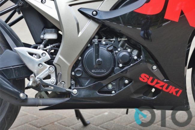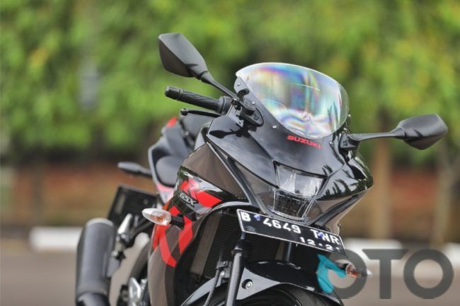 Sebelum kita bahas rasa berkendara, kita lihat dulu wujudnya. Desain motor ini jelas berbeda dari kompetitor di kelasnya, Yamaha R15 atau Honda CBR150R. Motor ini terlihat ramping, ringkas, sama sekali tak memberi kesan sebuah moge (motor gede) seperti kedua pesaingnya itu. Bagi saya kejujuran Suzuki ini jadi poin plus. Tak perlulah tiru-tiru Yamaha R15 bergaya moge karena memang motor bermesin 150 cc bukanlah moge.