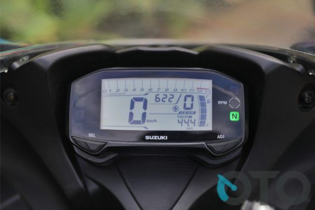 Fitur keren kedua yang dimiliki Suzuki GSX-R150, panel instrumen digital. Fitur ini sebetulnya bukan hal baru di industri otomotif roda dua. Bahkan skutik bermesin 125 cc seperti Yamaha Lexi pun, sudah pakai instrumen panel digital. Kelebihan panel instruen digital, lebih banyak informasi yang bisa ditampilkan. Selain penunjuk kecepatan (kpj), putaran mesin (rpm) dan indikator sisa bahan bakar, panel instrumen digital juga bisa menampilkan jarak tempuh (trip A dan trip B), konsumsi bahan bakar rata-rata (AVG) maupun jam. Tampilannya pun cukup mencolok terutama saat menyala di malam hari. Apalagi ketika posisi RPM sudah berada di level yang ditentukan untuk perpindahan gigi, Shift Light Indicator juga akan menyala terang. Pernah saat mengendarai motor ini, pengemudi Honda MegaPro lawas di sebelah saya melirik spidometer digital motor ini di kemacetan. (Rs/Van)