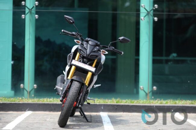 Depannya terlihat sangar, begitu kental nuansa MT series, khususnya MT-09 2019. Secara keseluruhan, menurunkan desain plek-plekan khas pakem keluarga MT yang ada. Dari ujung kepala sampai ujung buritan, sudah ganteng pol. Punya tampang yang tidak lazim untuk motor naked bike 150 cc di Indonesia. Banyak yang bilang, mukanya mirip tokoh robot dalam sebuah film Amerika. Ada juga yang mengatakan serupa dengan muka predator. Namun tidak bagi saya, ini semacam cerminan motor era sekarang, yang mengedepankan tampilan agresif.