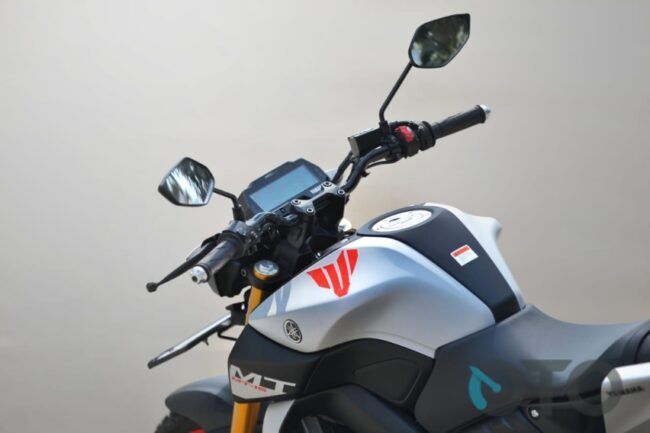 Bodi dibuat padat di depan, ciri khas motor street fighter. Tapi tidak menghilangkan DNA MT series. Terlihat ada logo khas MT tertempel di sisi kiri tangki. Banyak garis tegas dan detil sudut yang tajam, bisa dilihat di bagian tangki dan air shroudnya. Menciptakan motor yang berotot dan sporty.
