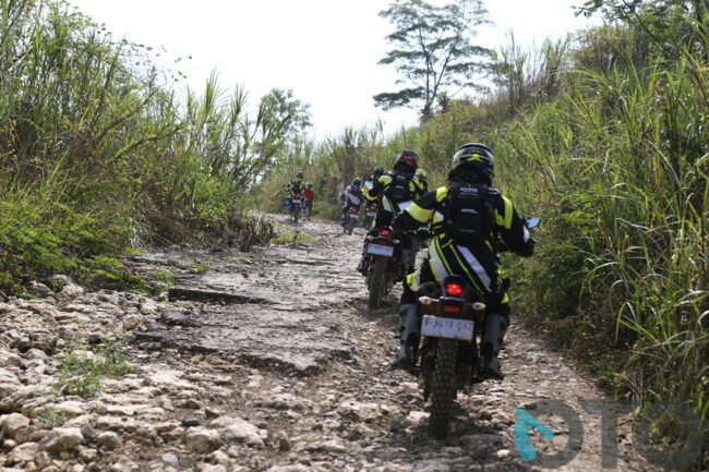 Di sini kami kembali beristirahat lumayan lama. Pasalnya, ada rute full tanah menanti di depan mata. Etape ketiga ini berjarak 10 km dengan titik tujuan ke Goa Garunggang. Singkat, tapi diyakini memberikan kami impresi lebih terhadap WR 155 R. Kombinasi trek berkarakter bumpy dan narrow, menjadi ladang paling pas untuk mencicipi perbekalan sang kuda besi.