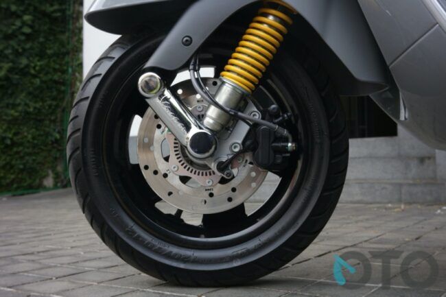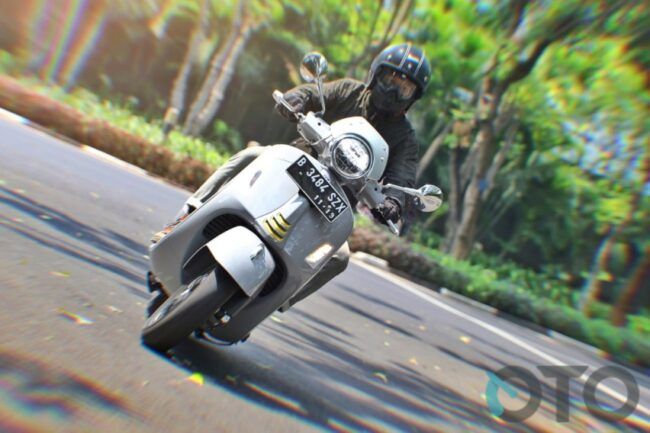 Namun kami rasa, saat menikung tajam ia tak begitu akurat. Vespa memang begini. Konstruksi utamanya tak mendukung manuver lincah. Mesinnya berpangku pada swing arm, sementara hanya ada satu kuncian ke sasis monokoknya. Selalu kontradiktif memang, antara suspensi lembut dan kelincahan bermanuver. Ia lebih asyik diajak berlari lurus dengan aspal tak rata ketimbang harus meliuk-liuk tajam.