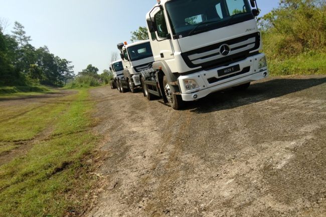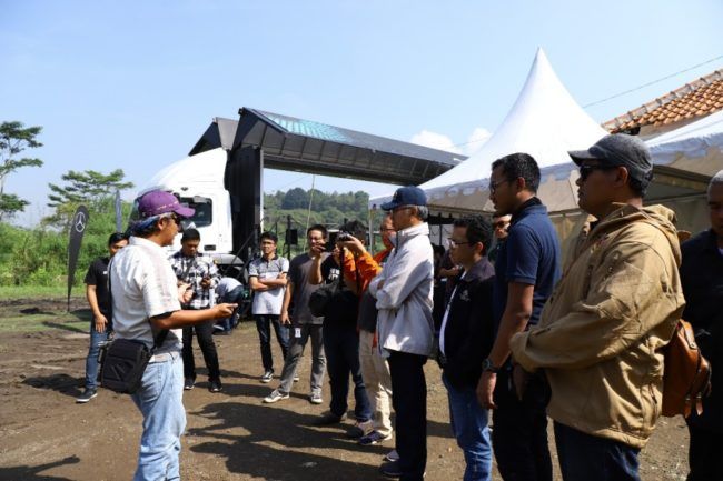 Sebelum mulai menguji Mercedes-Benz Axor 3340 S, ada pembekalan pemahaman safety driving dan kode etik mengemudi truk. Ini dipaparkan Adjit, Chief Instructure Professional Defensive Driving Course DCVI. “Pertama, wajib menggunakan sepatu supaya tidak licin. Mengingat kebanyakan medan tanah, sangat bahaya jika menggunakan sendal. Lalu saat memasuki truk, pijak footstep yang sudah tersedia. Jangan malah bertumpu pada baut pelek. Ini kebiasaan buruk yang sering dilakukan para pengemudi. Padahal berbahaya. Nah, saat sudah menginjak footstep. Biasakan bertumpu dengan dua tangan dan satu kaki atau dua kaki dengan satu tangan. Sudah tersedia tulang besi yang bisa digenggam. Jika sudah duduk, atur posisi senyaman dan seergonomis mungkin.